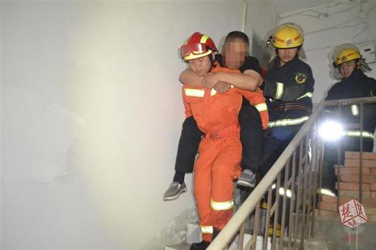 暖心!老人生病在家,消防官兵从8楼将老人背上救护车